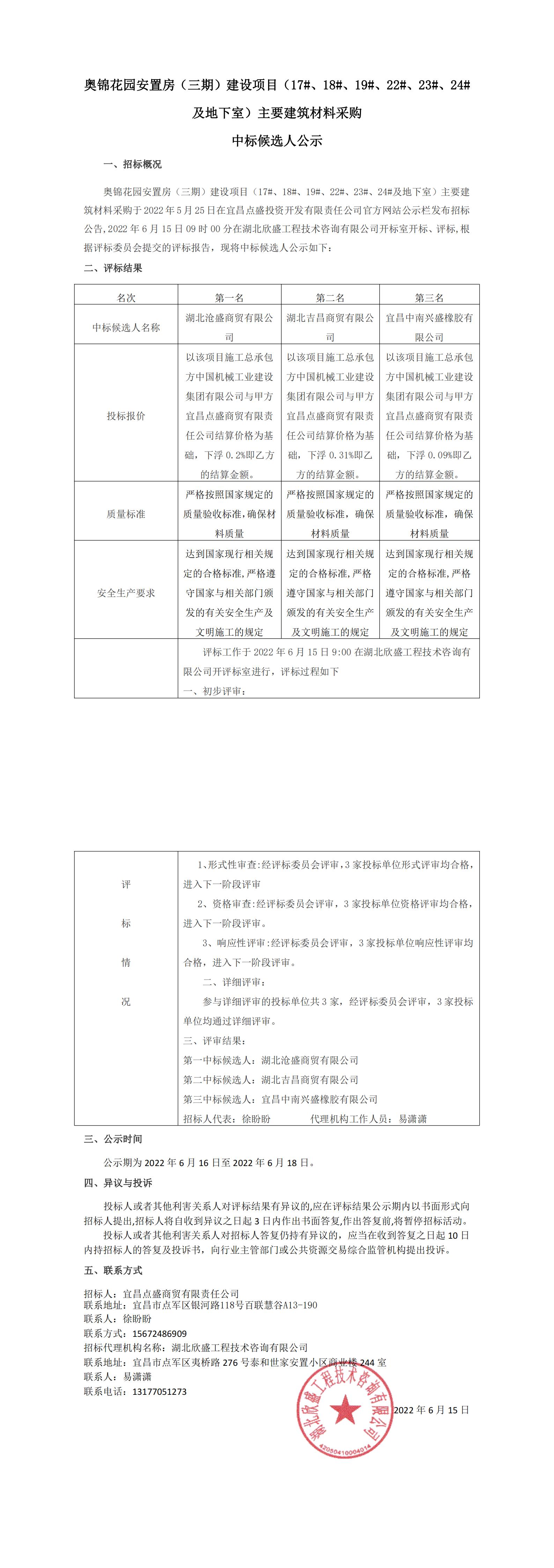 奧錦花園安置房(三期)建設(shè)項目(17#、18#、19#、22#、23#、24#及地下室)主要建筑材料采購中標候選人公示
