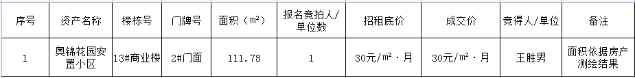 三、招租結(jié)果: