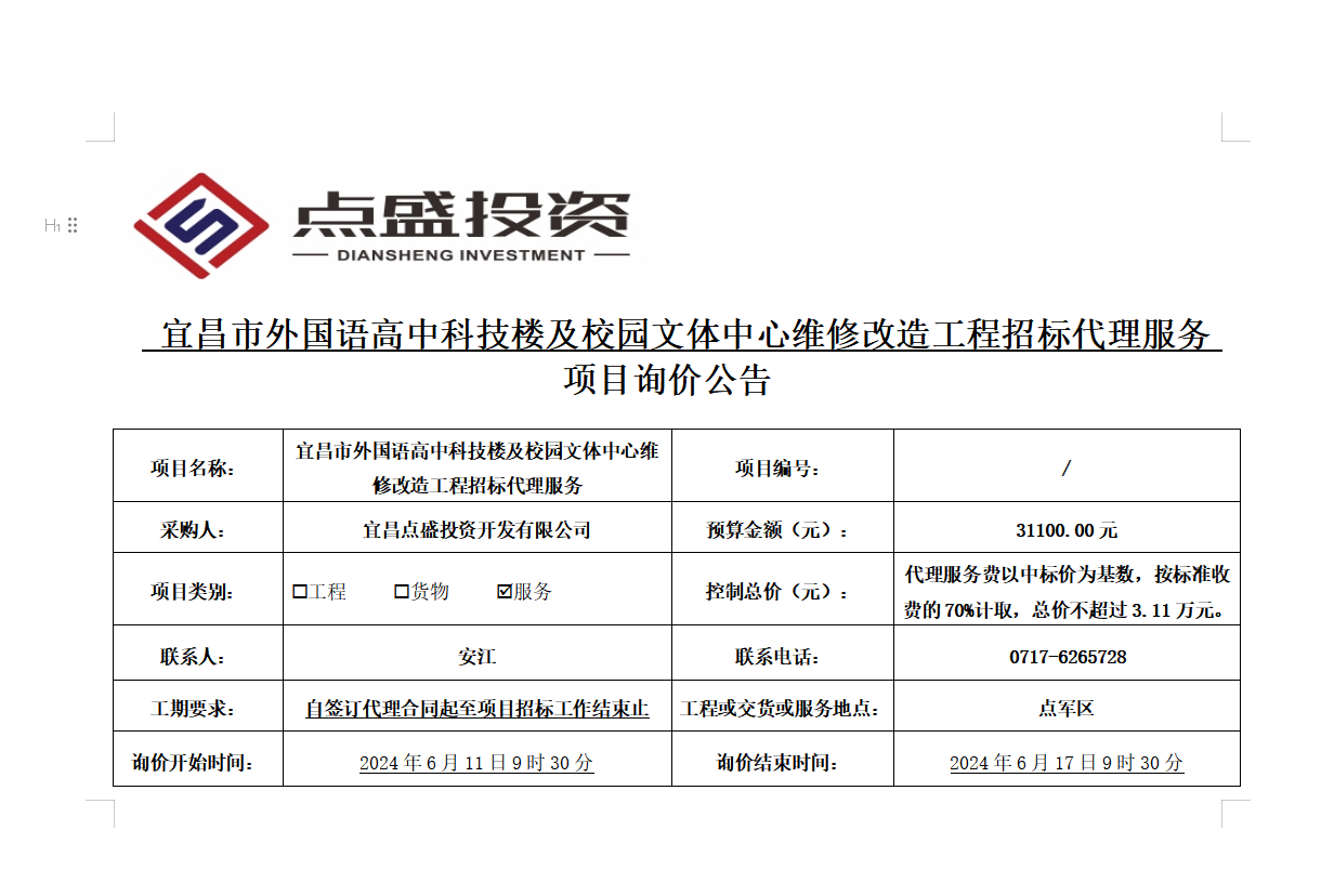 宜昌市外國(guó)語(yǔ)高中科技樓及校園文體中心維修改造工程招標(biāo)代理詢價(jià)公告