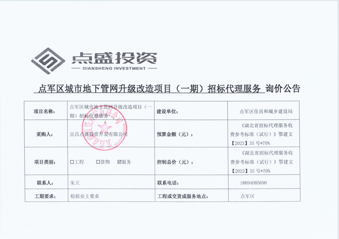 點軍區(qū)城市地下管網(wǎng)升級改造項目(一期)招標(biāo)代理服務(wù) 詢價公告