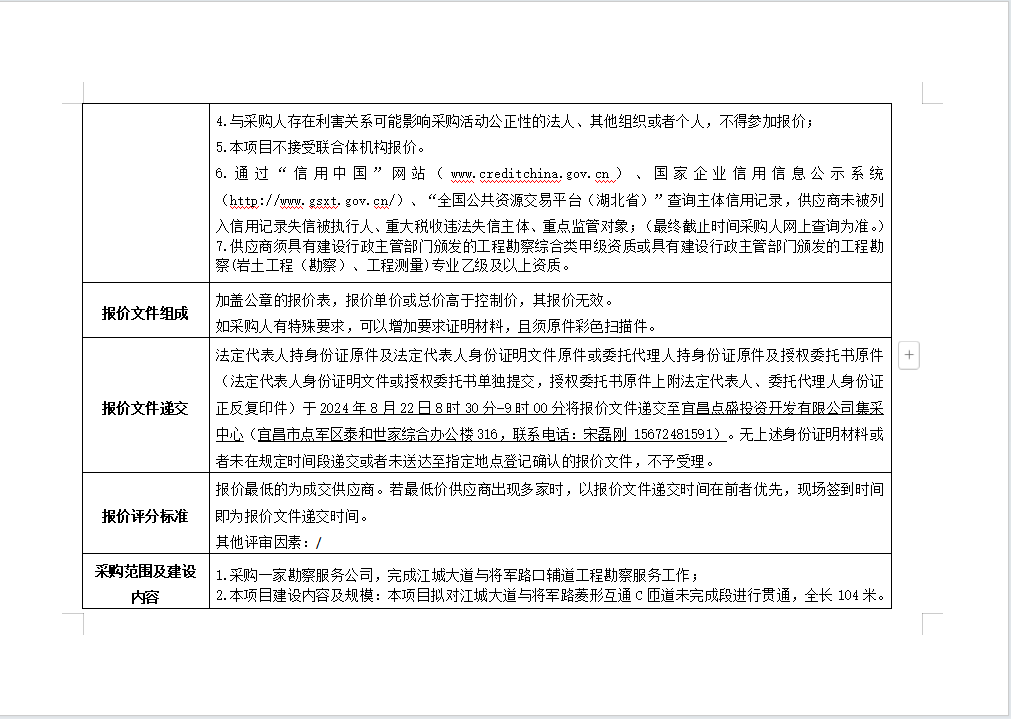 江城大道與將軍路口輔道工程勘察服務(wù)詢價(jià)公告