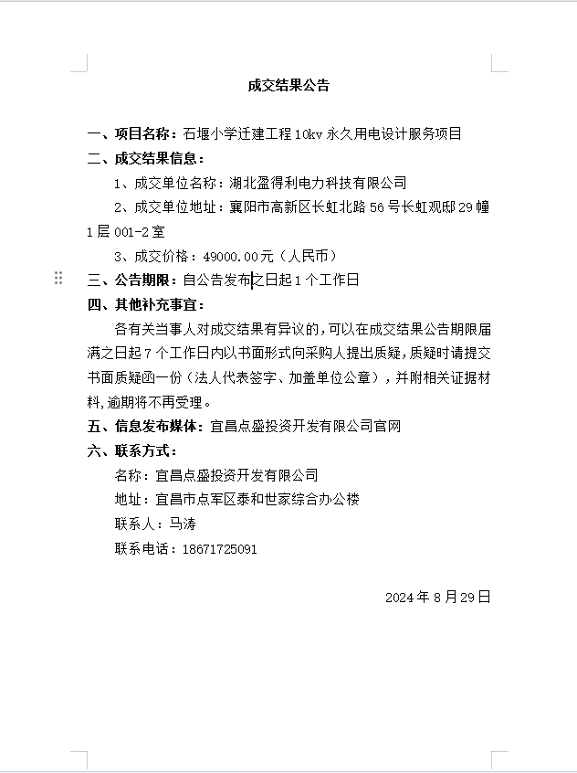 發(fā)布時間:2024/8/29 來源:宜昌點盛投資開發(fā)有限公司 訪問:1006