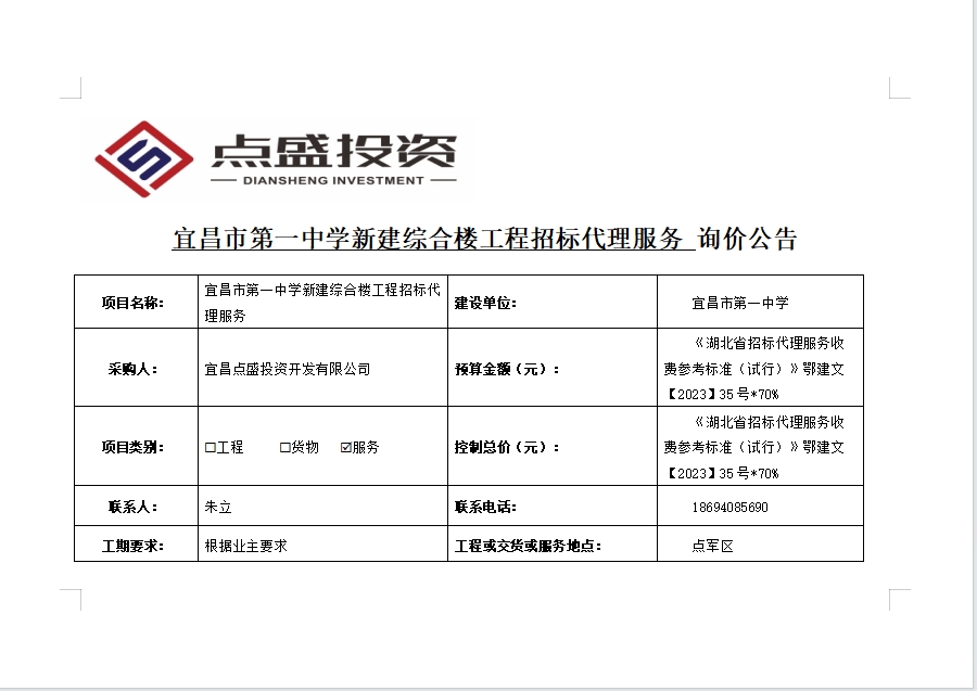 宜昌市第一中學新建綜合樓工程招標代理服務詢價公告