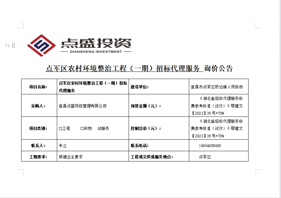 點軍區(qū)農(nóng)村環(huán)境整治工程(一期)招標代理服務詢價公告