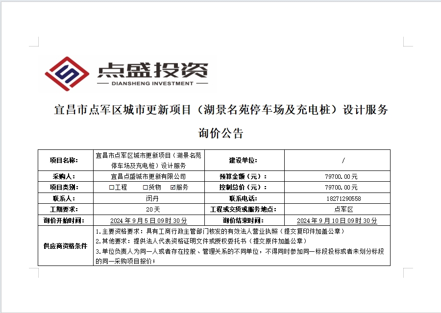 宜昌市點軍區(qū)城市更新項目(湖景名苑停車場及充電樁)設(shè)計服務(wù)詢價公告