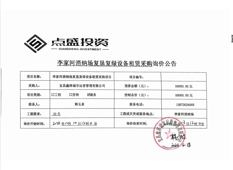 李家河銷鈉場復(fù)墾復(fù)綠設(shè)備租賃采購項目詢價公告
